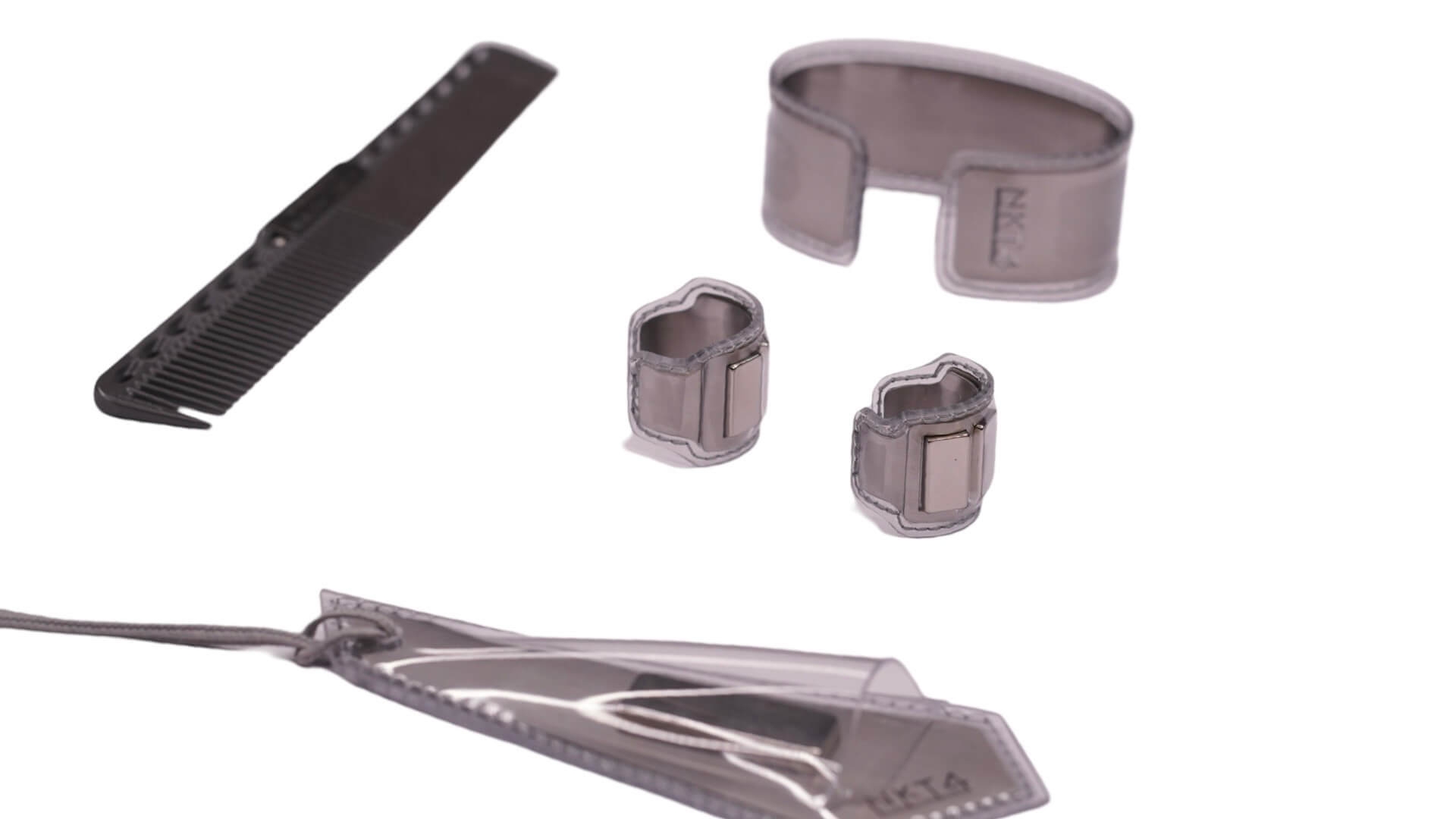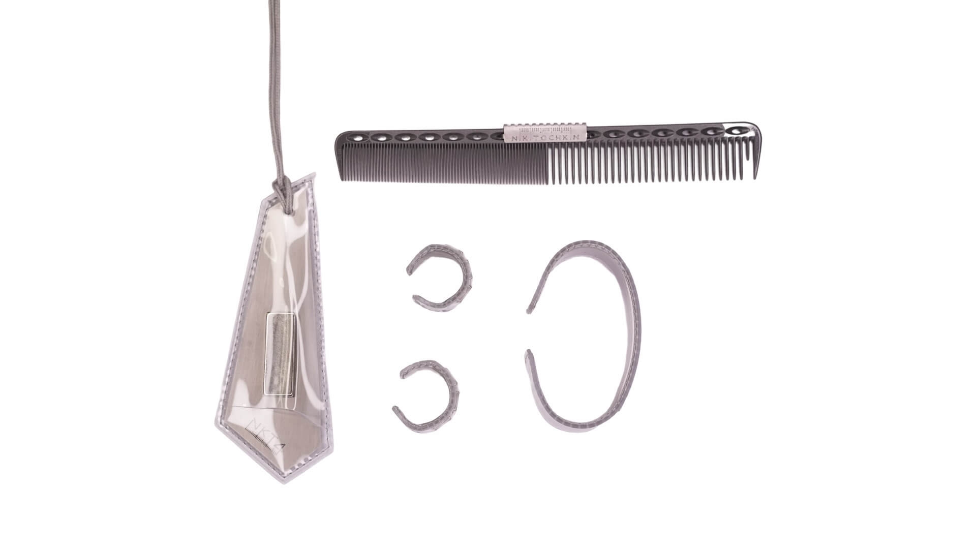Set of any scissors case, two rings, bracelet and gray Y.S.Park 339 comb with a little costomizing. All made of vinyl wrap , stainless steel, magnets. How to use the set can be seen in the detailed video instructions.